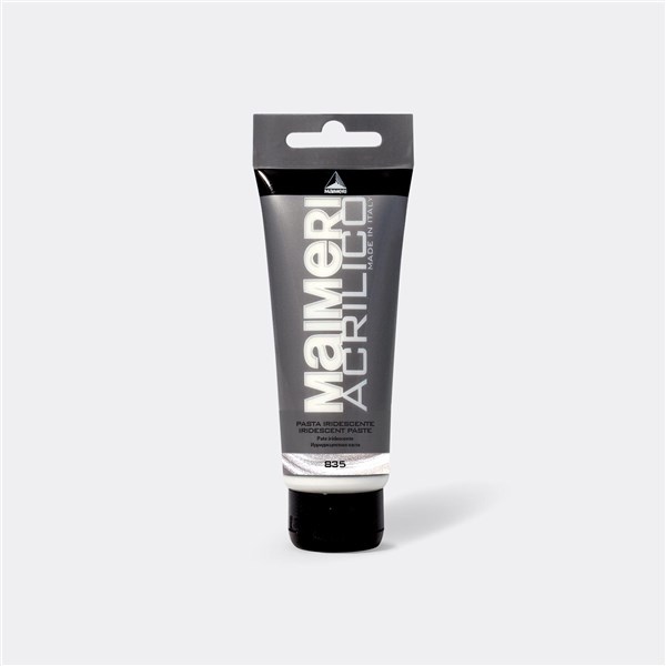 pasta con effetto iridescente miscelata con i colori acrilici li rende con finitura iridescente.Ideale per tecniche a spessore.