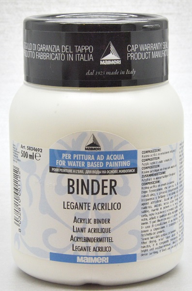 Legante trasparente per colori acrilici, estremamente versatile conferisce una finitura brillante. Resistente agli agenti atmosferici, si diluisce con acqua. Ideale per pittura materica, accoglie senza alcun limite sabbie in polvere e in grani, marmo in polvere e in pezzi, carta, legno in polvere o in trucioli, stoffe, vetro, asfalto e qualsiasi altro riempitivo inerte. Essicazione rapida circa 30 minuti.