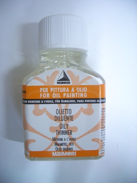 Olietto Diluente Maimeri. Miscela di ragia minerale e olio di lino, regola la consistenza dei colori a olio senza smagrire troppo l’impasto