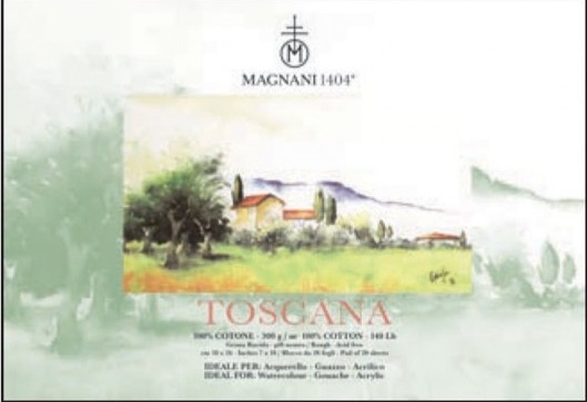 Questa carta è fabbricata su forma in tondo , utilizzando feltri marcatori naturali di esclusivo disegno Magnani 1404. La sua composizione 100% cotone e lavorazioni senza acidi e derivati del cloro conferiscono alla carta resistenza all'ingiallimento dei raggi UV e garantisco durata nel tempo e massima resa dei colori applicati.Particolarmente idicata per tutte le tecniche umide