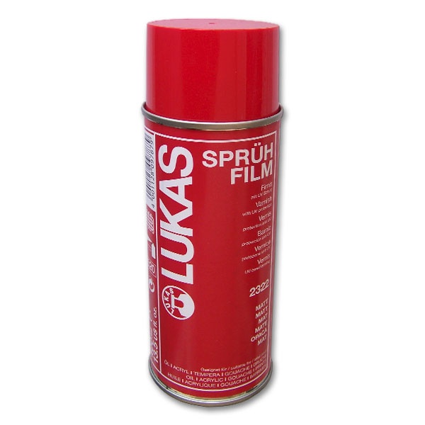Spray film fissativo di LUKAS 2322 è una vernice a rapida essiccazione, non ingiallisce, elastica, per dipinti acrilici, ad olio e a tempera. Agitare prima dell'uso. Disponibile in bomboletta spray da 400 ml con propellente non nocivo per l'ozono..