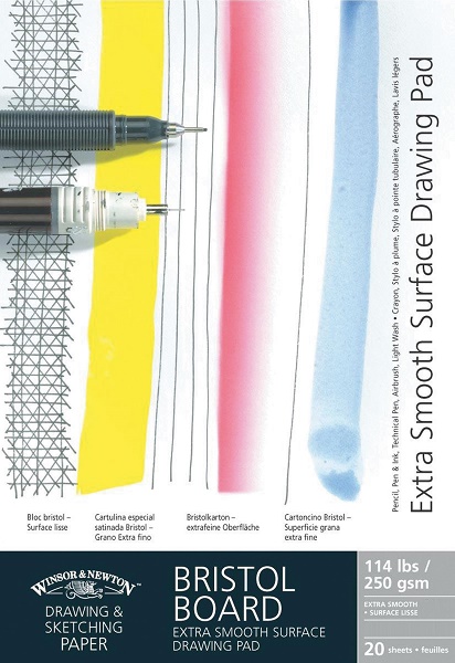 Bristol Board extra liscio ha un peso di 250gm e ha una superficie extra liscia e un colore bianco brillante che lo rende ideale per disegni e illustrazioni di dettagli fini con matita, penna tecnica, penna e inchiostro e aerografo. 100% privo di acido e 100% senza legno per garantire la stabilità a lungo termine. Ha una forte superficie molto resistente a cancellazioni ripetute ed è adatto anche per tecniche umide. Bristol Board è disponibile in 3 formati A5, A4 ,A3, con 20 fogli per blocco