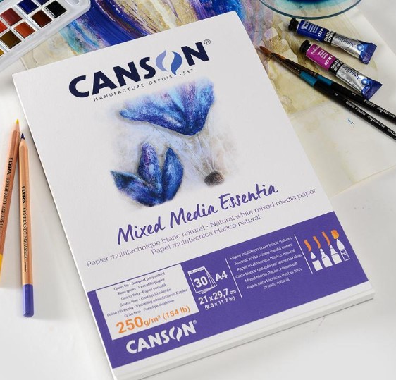 Canson® Mixed Media Essentia è una carta versatile che può essere utilizzata per tutte le tecniche (secche e umide). La sua composizione e la sua superficie entusiasmerà gli artisti, riflettendo la luce e donando brillantezza ai pigmenti. La sua tinta bianco naturale è ideale per una resa armoniosa dei colori e la sua superficie a grana fine permette di accentuare i contrasti.
