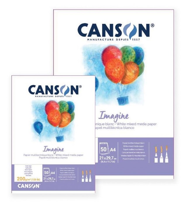 Il blocco mix media Canson Imagine contiene 50 fogli di pregiata carta per acquerello, con le seguenti caratteristiche: colore bianco naturale 200 g/m² grana fine 100% cellulosa resistente senza acidi Adatto sia per tecniche secche che per tecniche umide